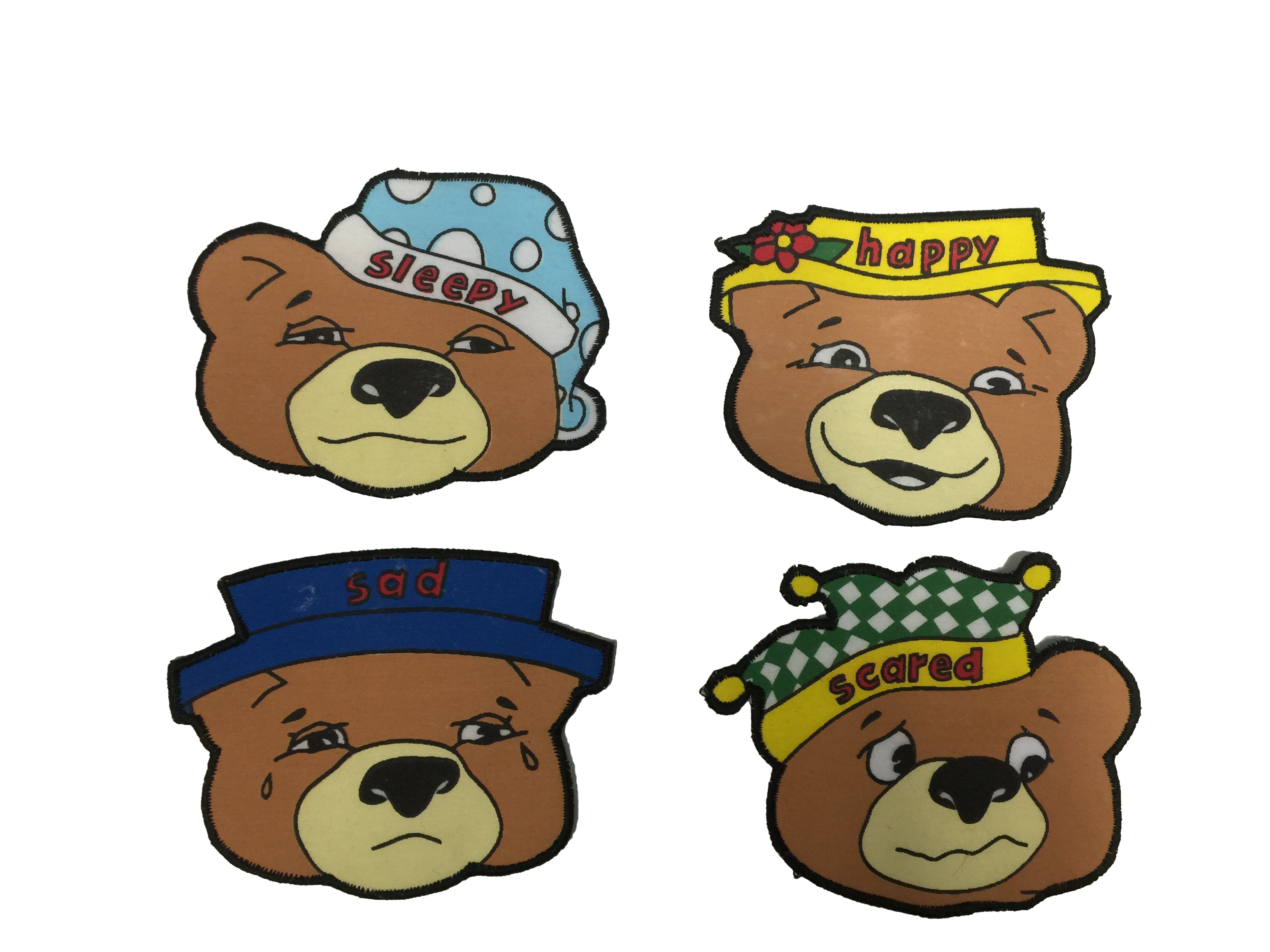 This hand-stitched wall hanging introduces your little one to the concept of feelings. Choose a face for the bear that identifies your child's feeling today. The interactive chart offers children a first step for identifying and handling emotions. A sturdy wooden dowel supports this cute wall hanging on the wall, or on the door.
